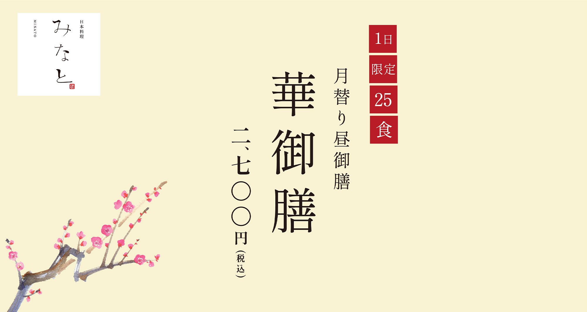華御膳は1日25食限定の昼食メニューでございます。お早めにご予約くださいませ。