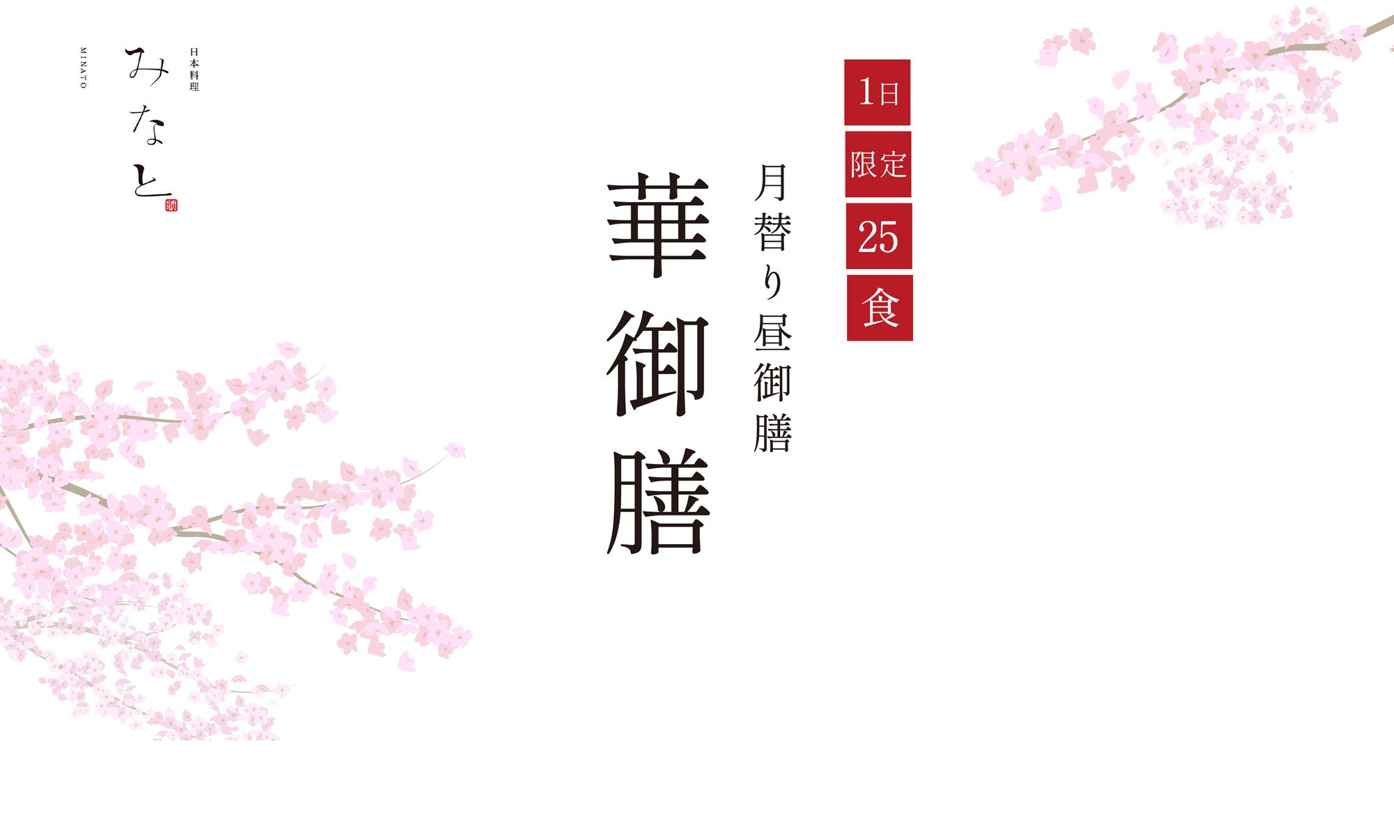 料理長が厳選した旬の食材をふんだんに使用した、3月の月替り昼御膳「華御膳 ~桜~」をご用意しました。